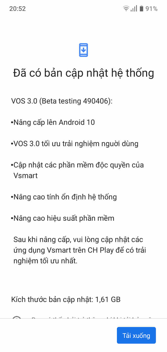 Như vậy sau 2 ngày VOS 3.0 cập nhật trên Vsmart Live thì tối nay 20h 07/04/2020 Vsmart Joy2+ là dòng điện thoại Vsmart thứ 2 được cập nhật bản VOS 3.0, nội dung của bạn cập nhật tương tự như trên Live: