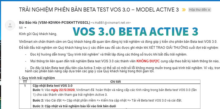 Cập nhật phần mềm [22/05/2020] Bản cập nhật VOS 3.0 Beta Acttive 3 lần 1