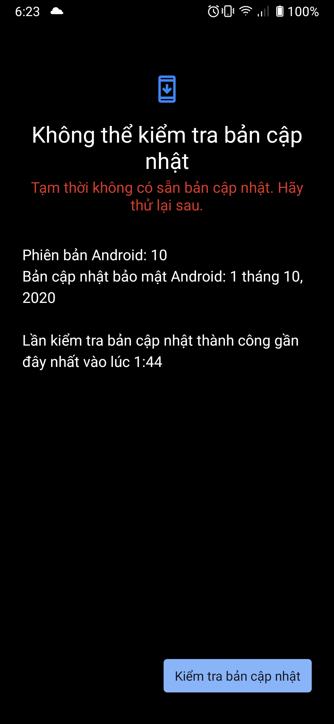 Lần kiểm tra thành công là 1h44. Mình kiểm tra lúc 6h20. Lúc chưa có bản cập nhập cũng vậy. Phải vào recovery để khôi phục cài đặt gốc. Cập nhập xong lại như vậy. Mai kiểm tra thì cũng vẫn là 1h44