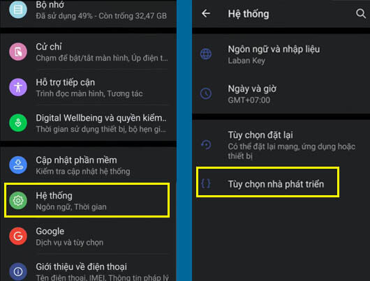Sau khi kích hoạt thành công ở bước 3 thì bây giờ tính năng Tùy chọn nhà phát triển sẽ xuất hiện trên điện thoại của bạn.Để truy cập vào bạn vào mục Hệ thống -> Tùy chọn nhà phát triển để xem và thiết lập các thông số nếu muốn nhé.