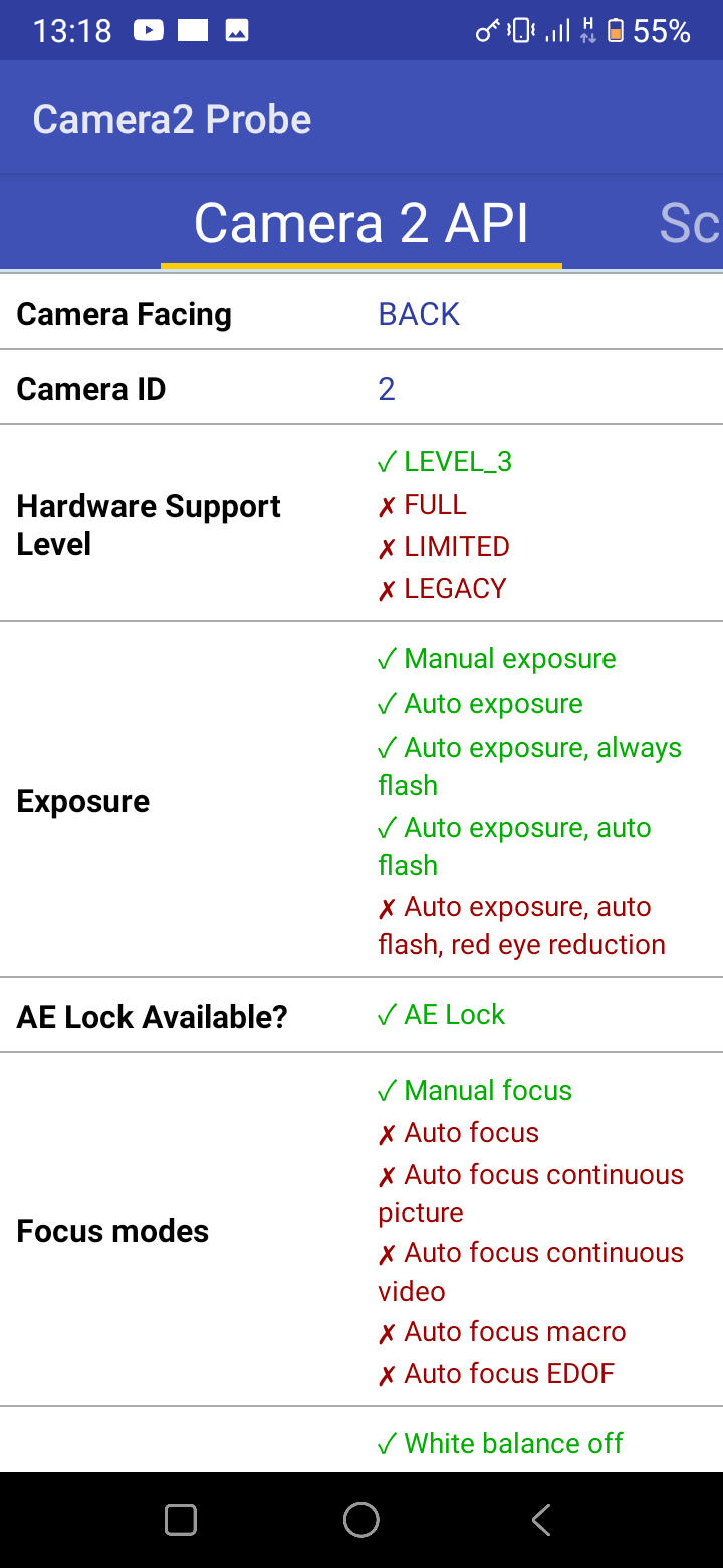 Kết quả đây ạ :Cài Camera2 API Probe trên chplay xem máy bạn tick xanh: Full hay Level 3 vậy?